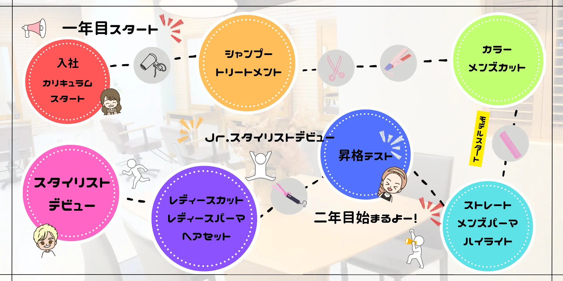 スタイリストデビューより先に、メンズスタイリストデビューを目指していただきます。
